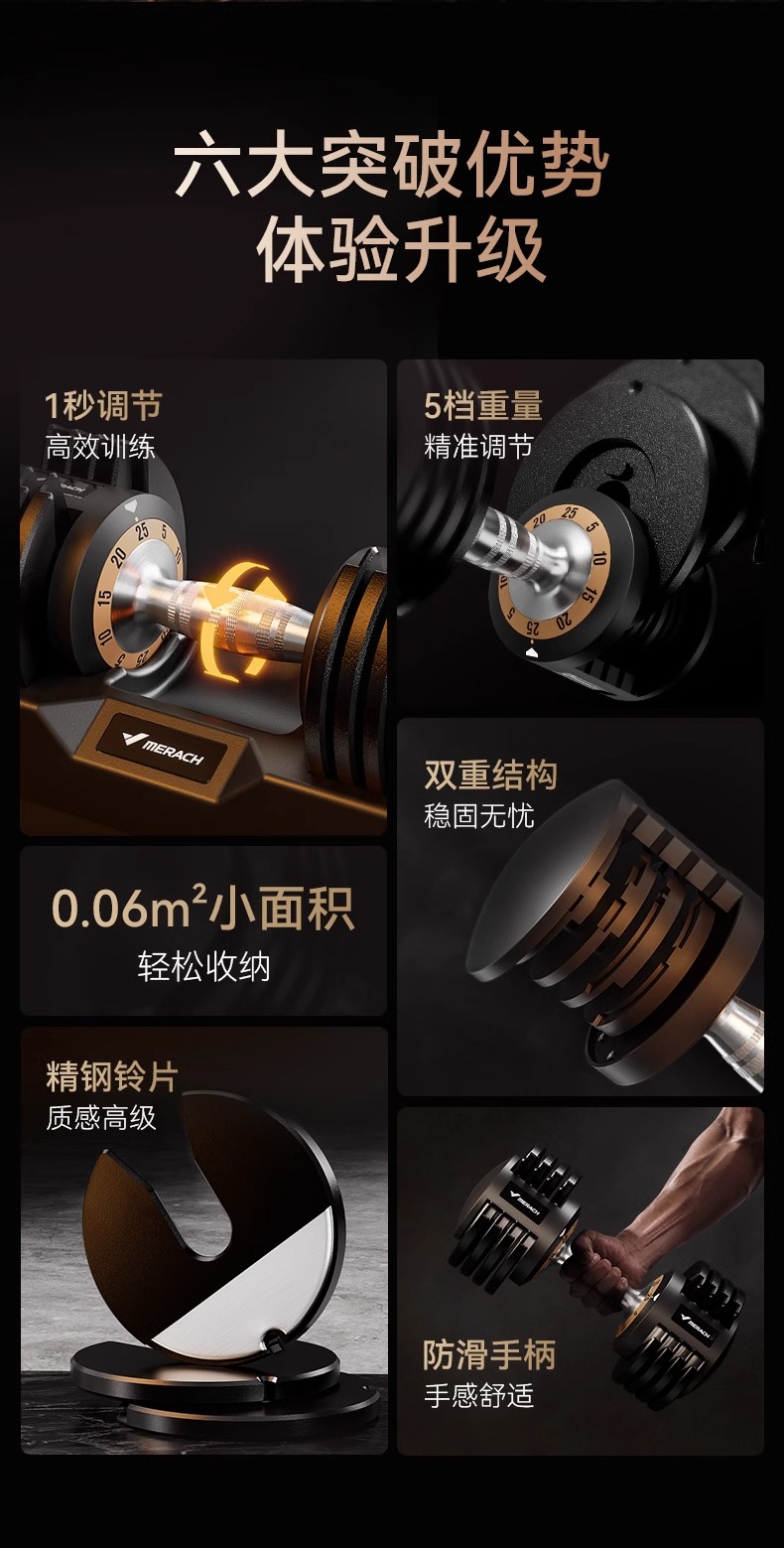 麦瑞克哑铃可调节大重量男士专业健身家用女士套装训练组合器材-单只装