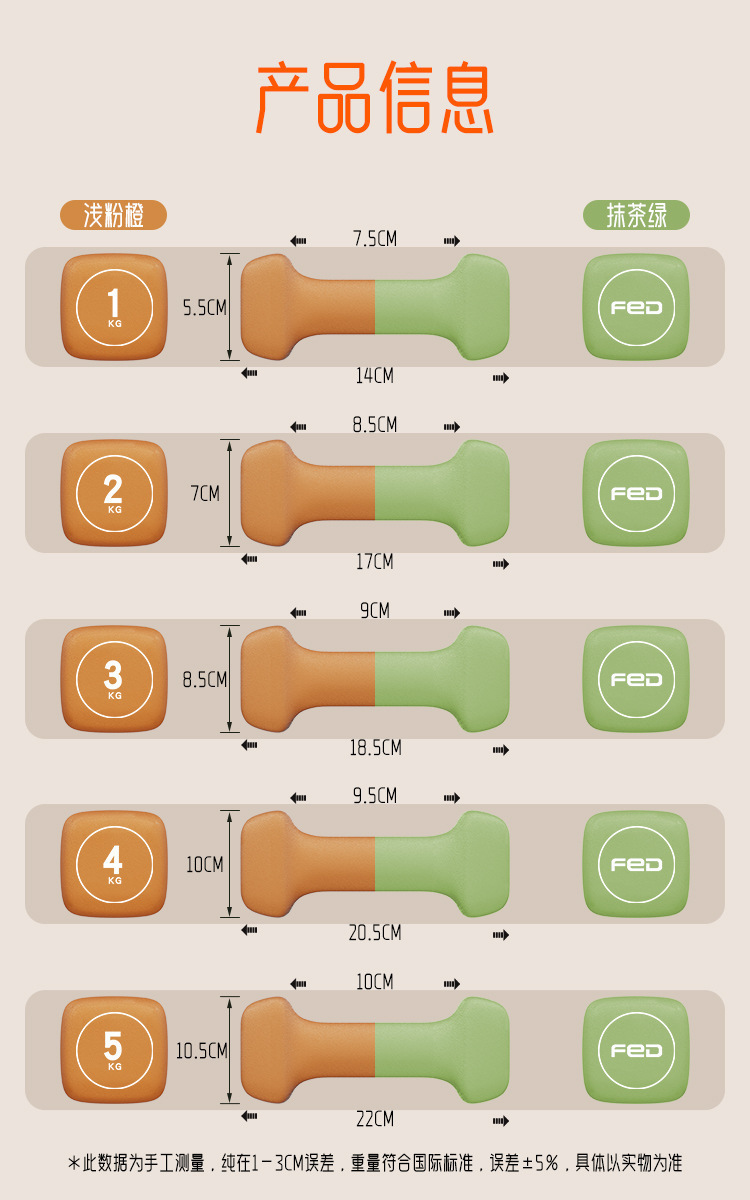 飞尔顿浸塑小哑铃女士健身家用男士力量训练器材初学者练臂肌亚铃