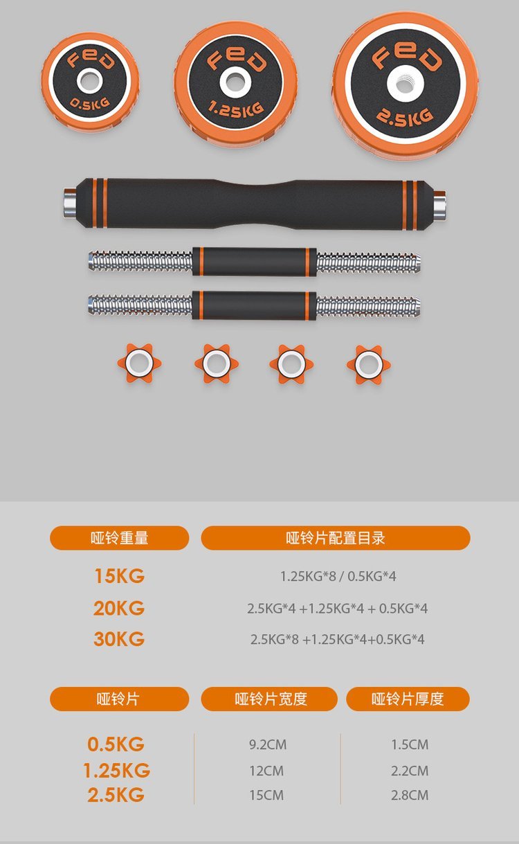 可调节重量哑铃套装组合电镀加套男士家用杠铃练臂肌运动健身器材